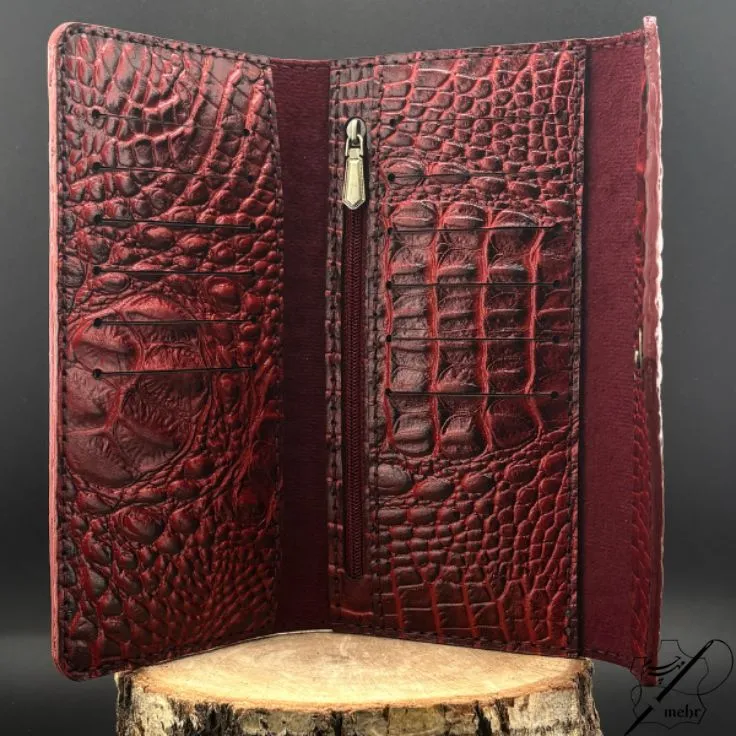چرا کیف پول چرم طبیعی زنانه زرشکی طرح کروکو را انتخاب کنیم؟